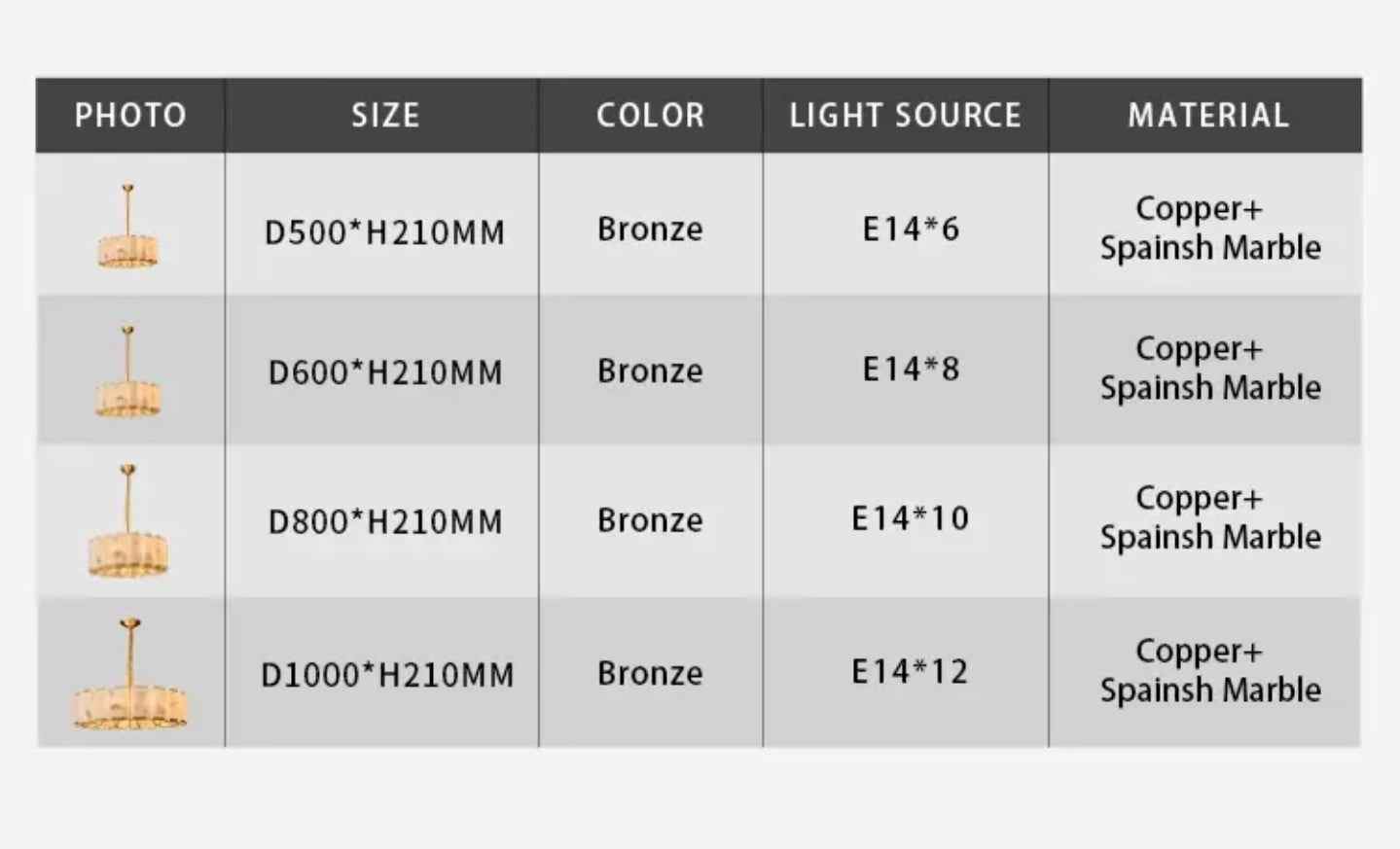 Main material: Copper + Spanish Marble